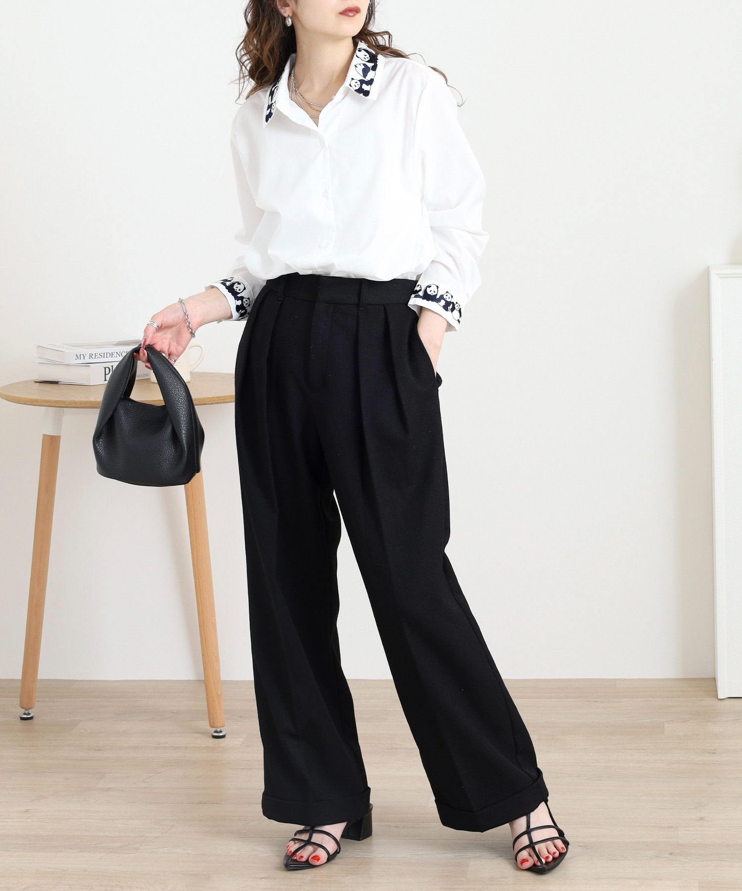 デニムパンツ(ジーパン)やフレアパンツ、ストレートパンツやペグトップパンツなど様々なボトムスとも合わせやすいです。