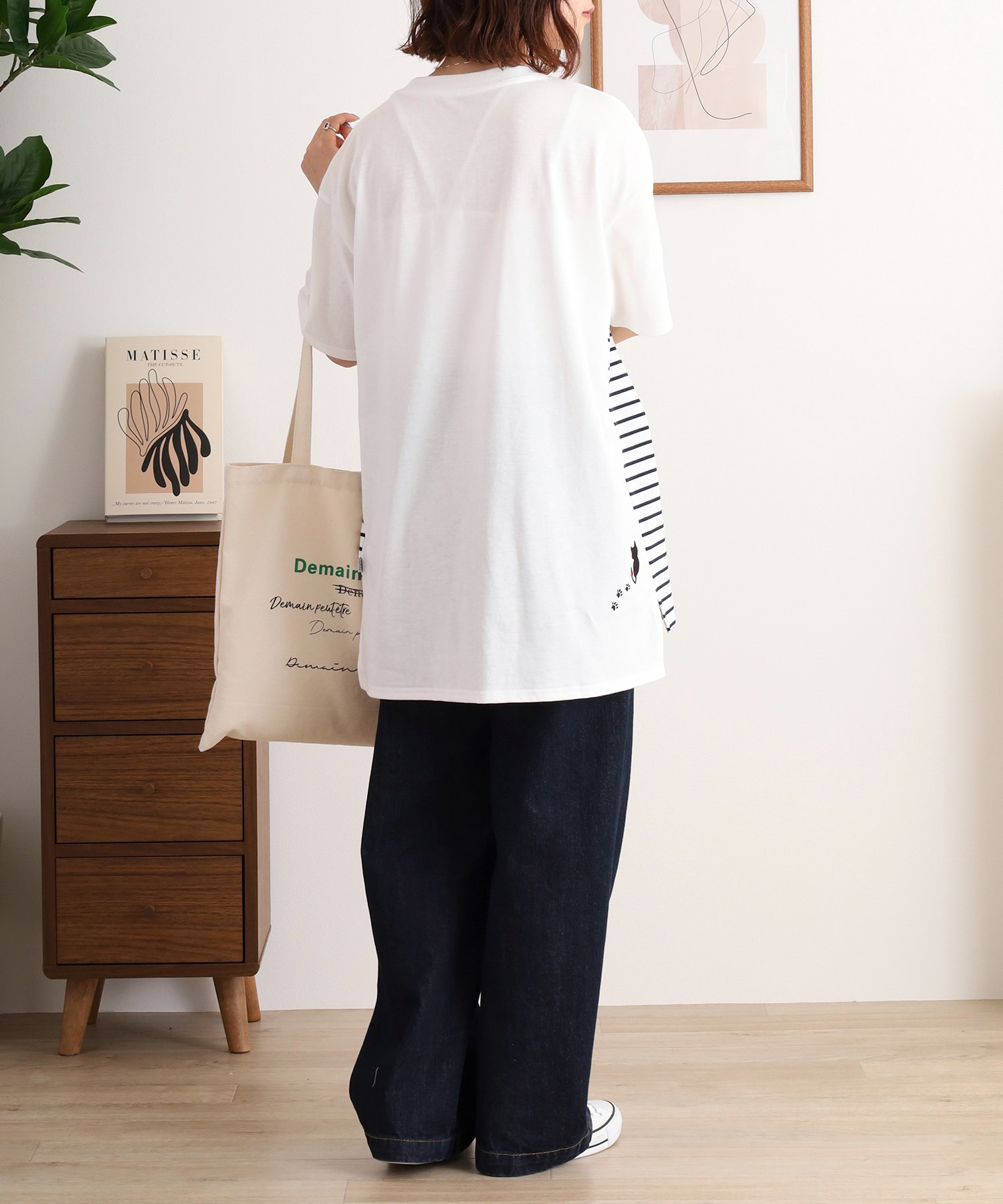 デニムパンツ(ジーパン)やフレアパンツ、ストレートパンツやジョガーパンツなど様々なボトムスとも合わせやすいです。